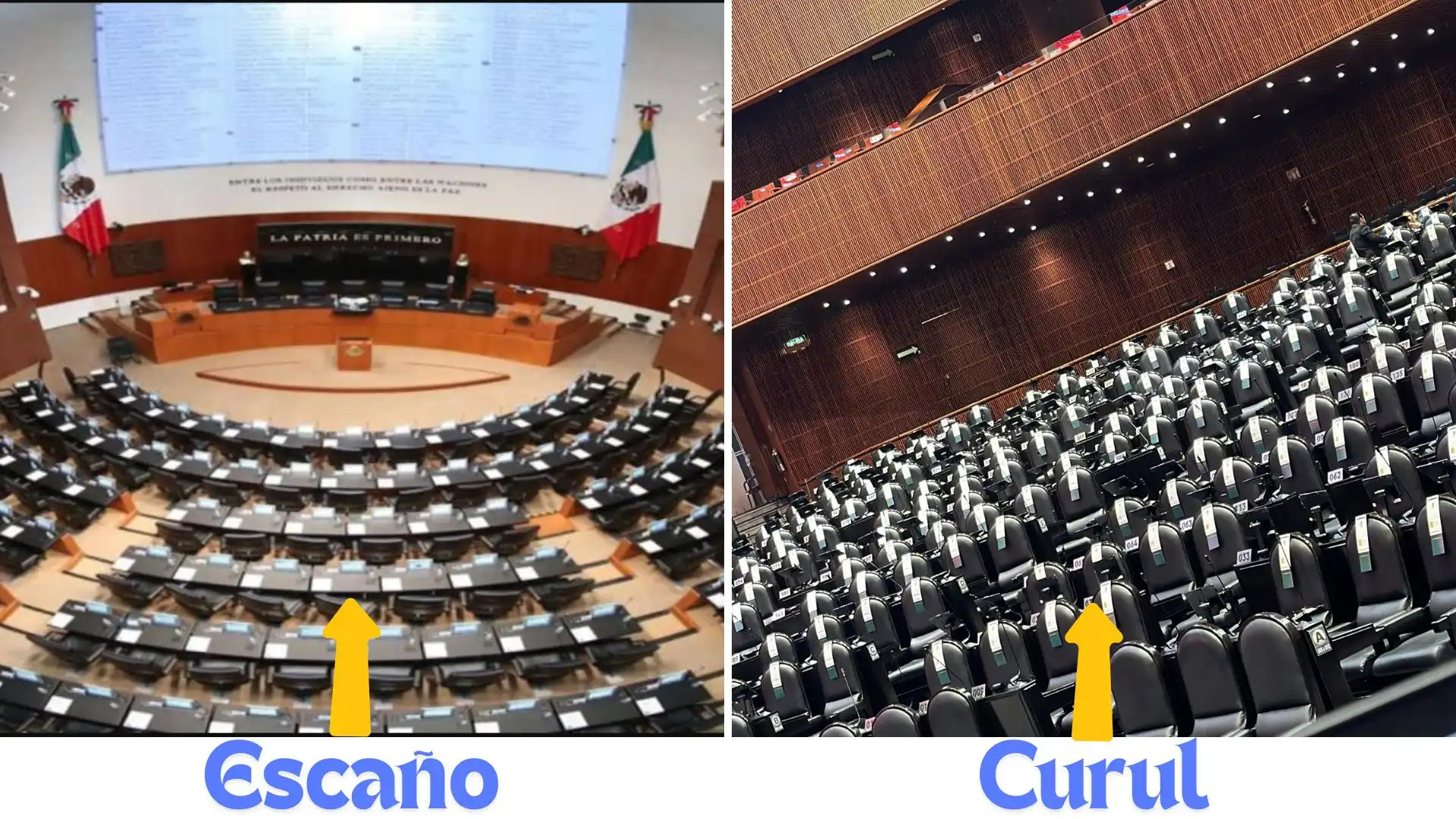 Es el lugar en donde los(as) Diputados(as) se sientan en el Salón de Plenos para trabajar durante las sesiones. Y en el Senado de la República, se llaman escaños.